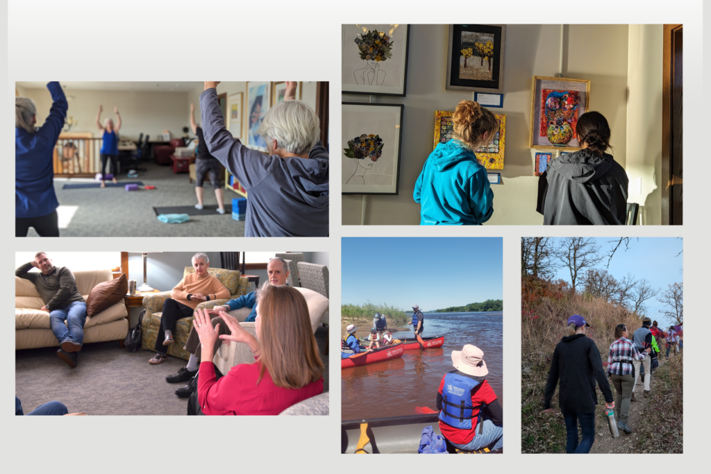 Pictured here: Yoga, Community Art Show, Everyday Adventures, and a support group.