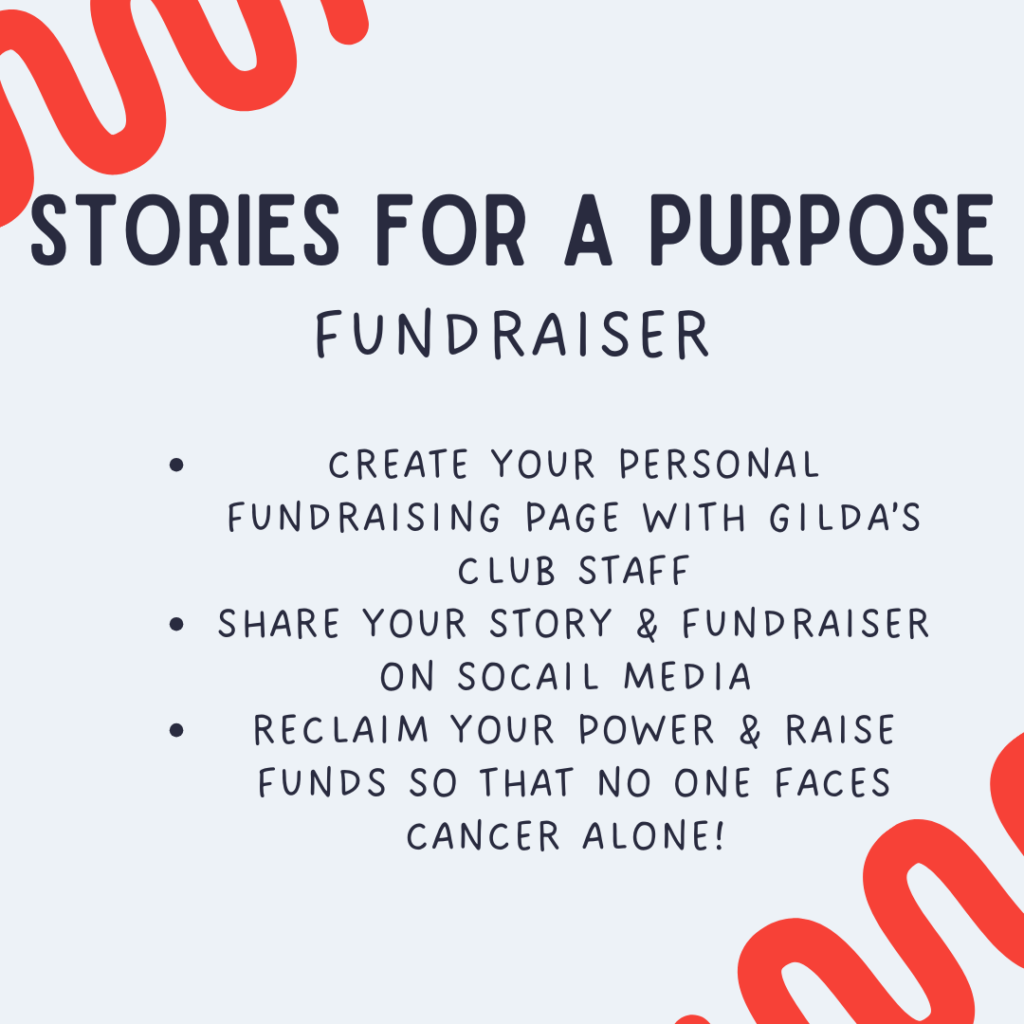 Create your own fundraiser filled with stories and photos about your journey and why you believe in Gilda’s Club’s mission. Share your story & page to reach your fundraising goal!